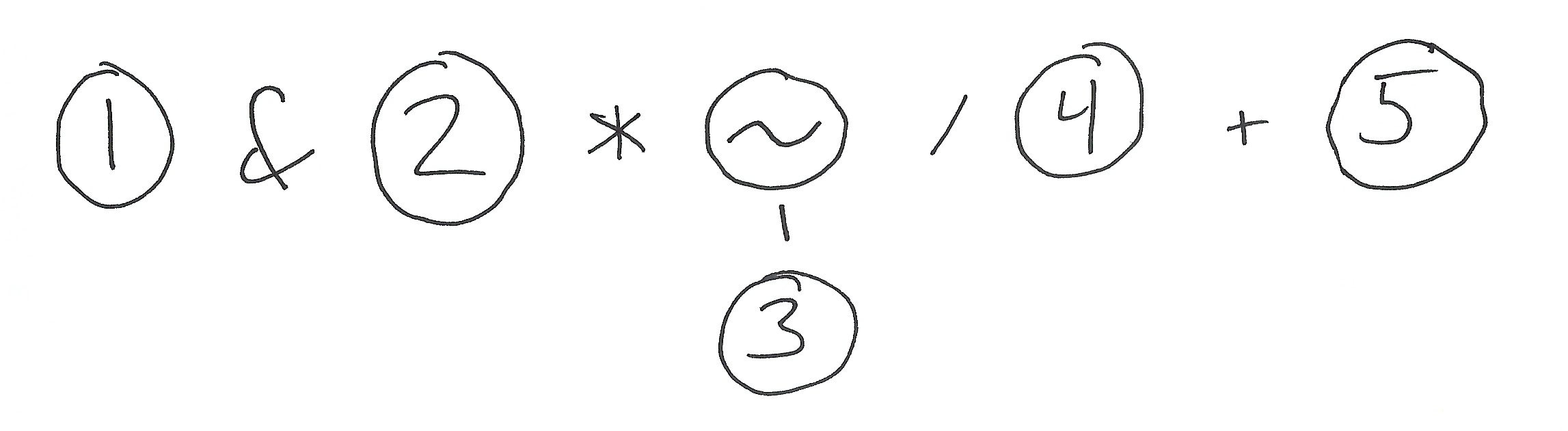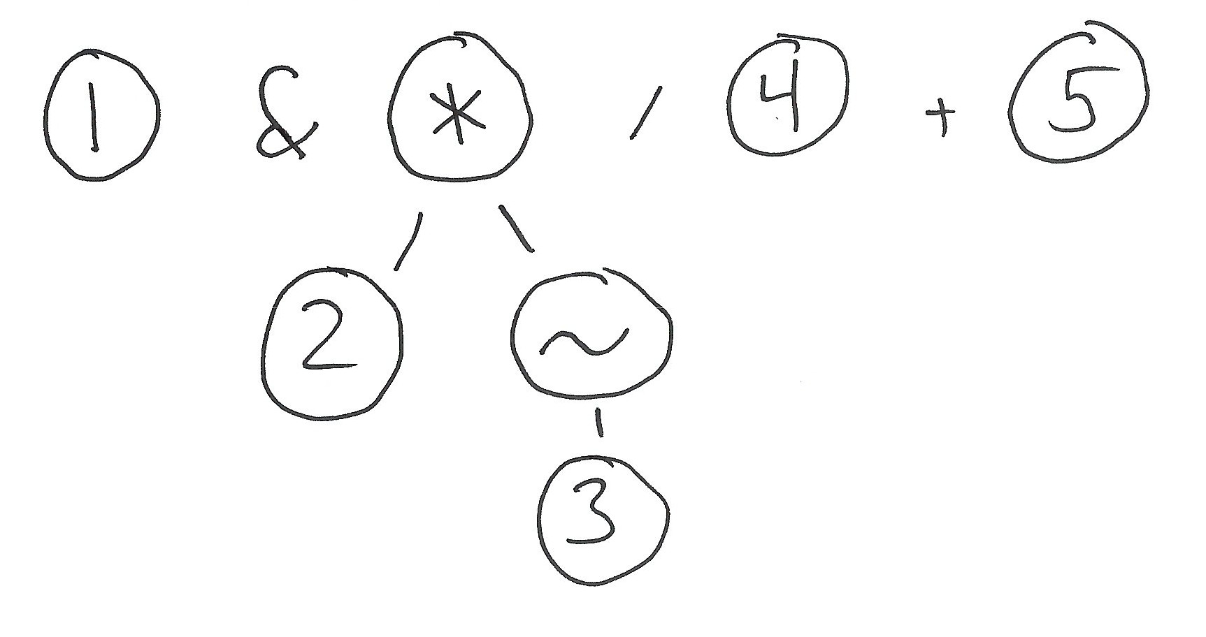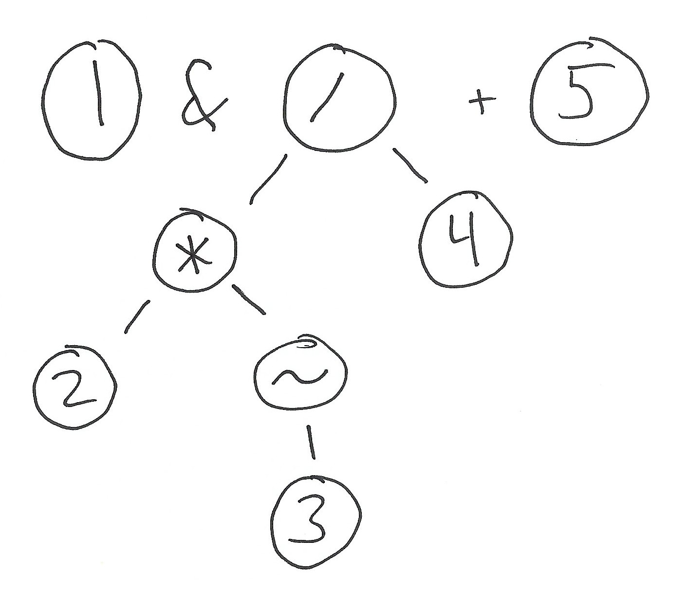 Consider the C expression 1 & 2 * ~3 / 4 + 5