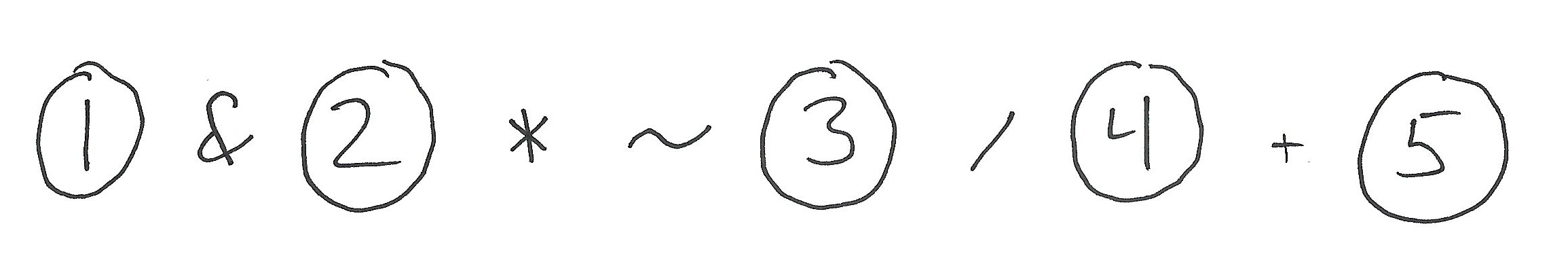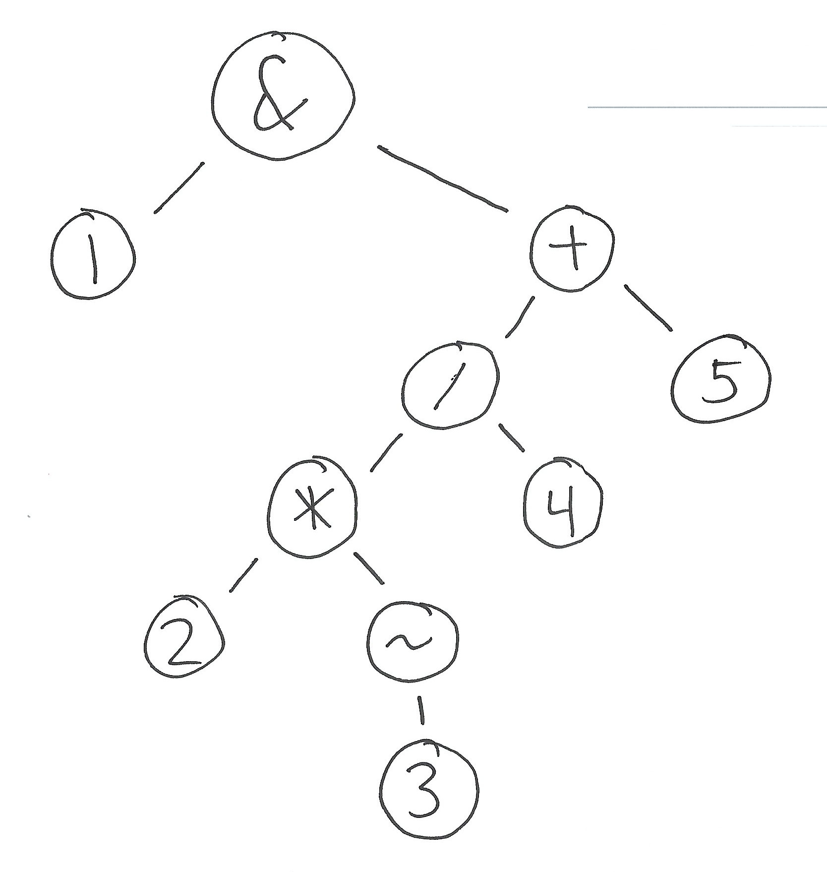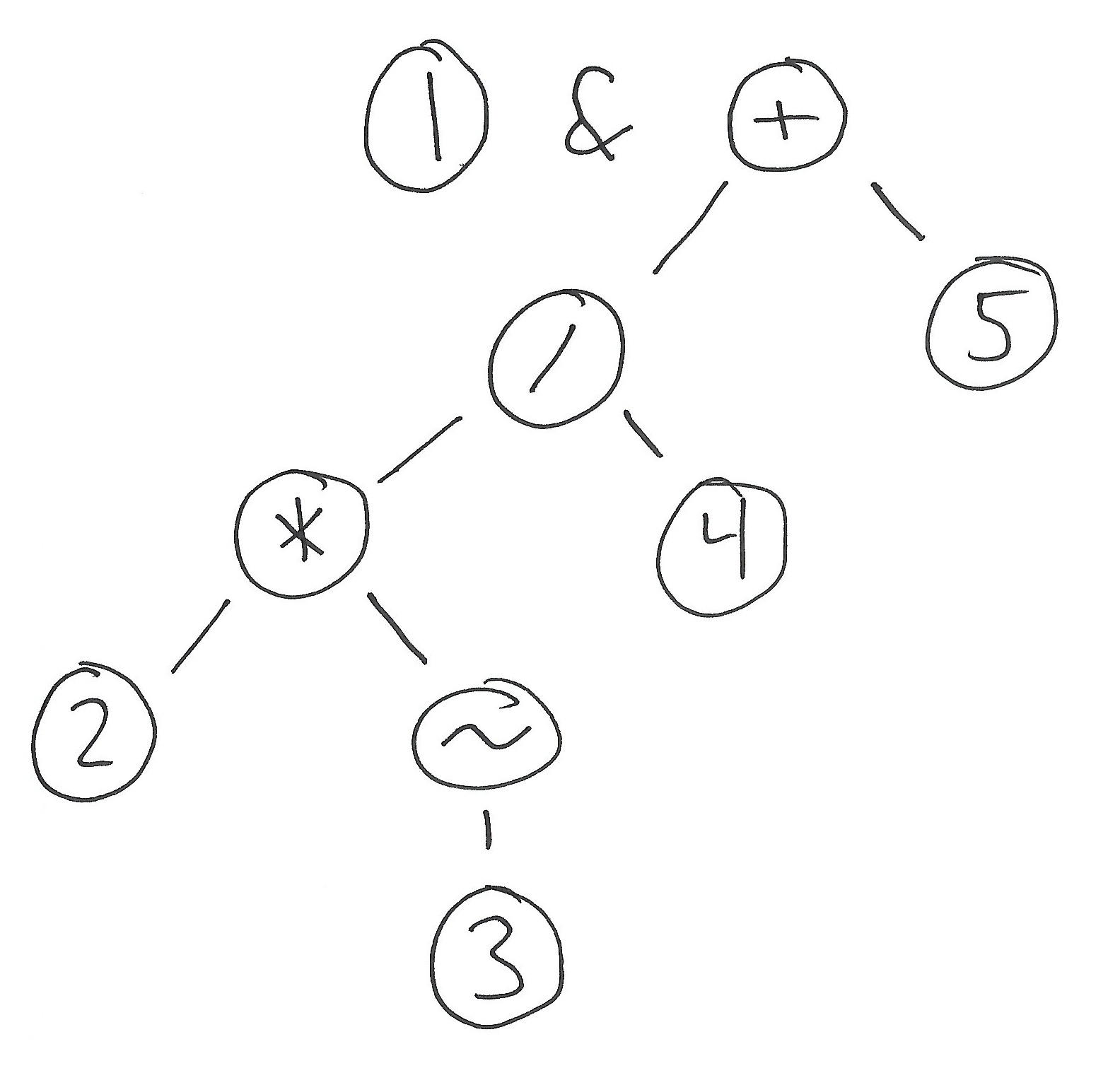 Consider the C expression 1 & 2 * ~3 / 4 + 5